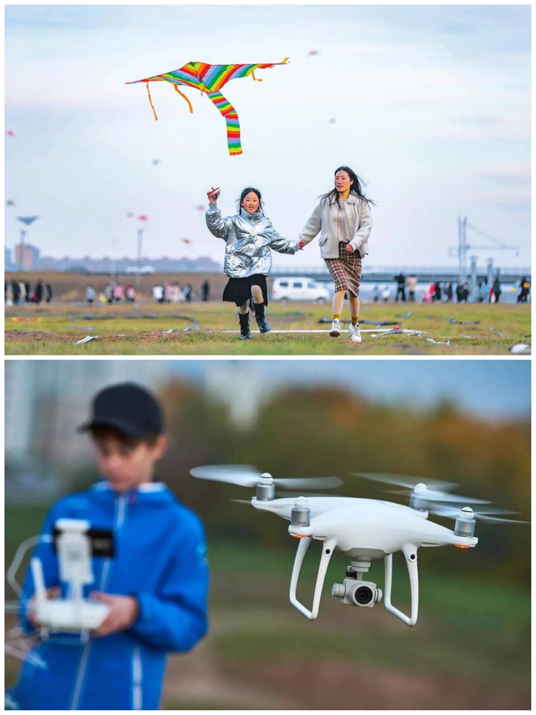 尤其是孩子们,一个遥控汽车、一个无人机,他们都能快乐一天。风和日丽、春风佛面,大人带着孩子在草地上一起放个风筝,那是多么和谐的一副画面呢!