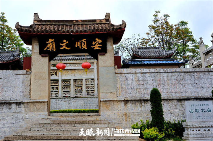 安顺文庙,又名“府学宫”,位于安顺市区内城东北黉学坝,始建于明洪武二十七年,历代增建、复修,臻于完备。是一组中轴对称,典制齐备,规模宏大,布局严谨,庄严典雅,以石雕艺术为主要特色的坛庙与儒学合一的古建筑群,是现今中国保存下来的建筑最完整、艺术性最高的文庙之一。
