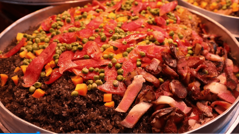 “这边的美食也是非常棒的,我们从上面一直吃到了下面,对我们的这个特色黑猪肉非常的执着。”