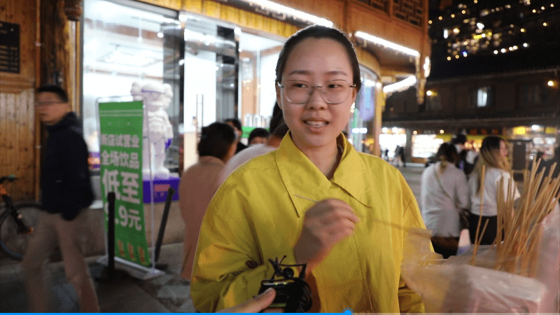 “我觉得黑毛猪的烤肉串蛮好吃的,还有这里的建筑物也很复古,我觉得也很不错。”