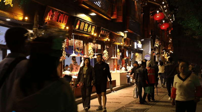 华灯初上,举目繁华。“五一”假期,西江千户苗寨景区的大街小巷的商铺纷纷延长营业时间,在繁忙的白天结束后,整装迎接入夜后的大波客流。夜幕降临,夜间消费逐渐登场,而雷山“黑毛猪”也成为了景区消费提振复苏的动力,点亮“夜西江”。