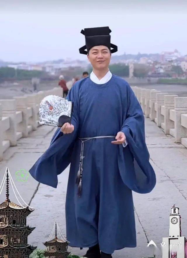 在直播中,任鲁豫还走出后直播间,穿上古代举子衣冠,漫步在洛阳桥上摆Pose,体会泉州的文脉遗风。