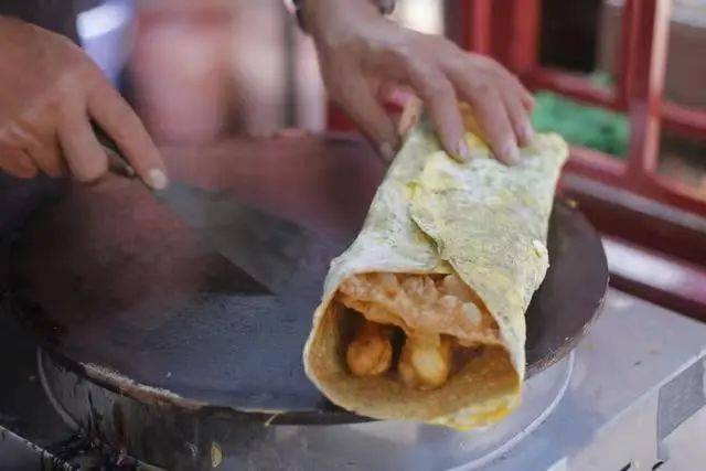 煎饼馃子是天津的传统小吃,由绿豆面薄饼、鸡蛋、还有油条或者薄脆的“馃篦儿”组成,再用面酱、葱末、腐乳、辣椒酱作为佐料。往往在居民区的煎饼馃子有着正宗的天津味道,hebuters不妨尝尝这“酒香不怕巷子深”的美食吧。