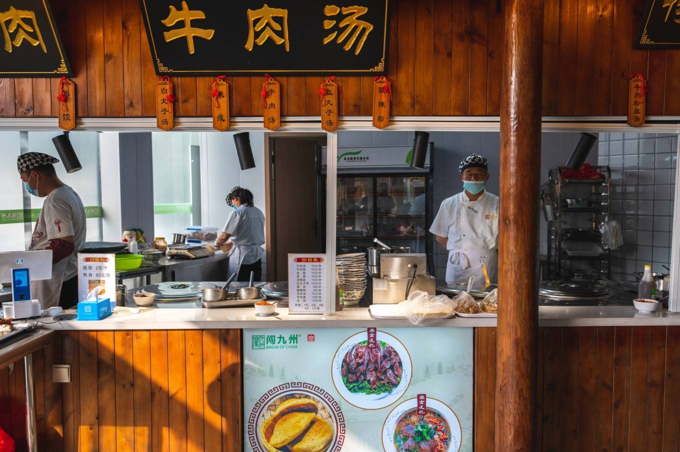 原来闯九州是当地一家著名的餐饮连锁企业,在当地有着较高的品牌知名度,以砀山特色美食为主,比如撒汤、水煎包、狗肉、烧饼、豆粥、锅贴、糁汤等等,品类十分丰富,琳琅满目的早餐让人眼花缭乱。