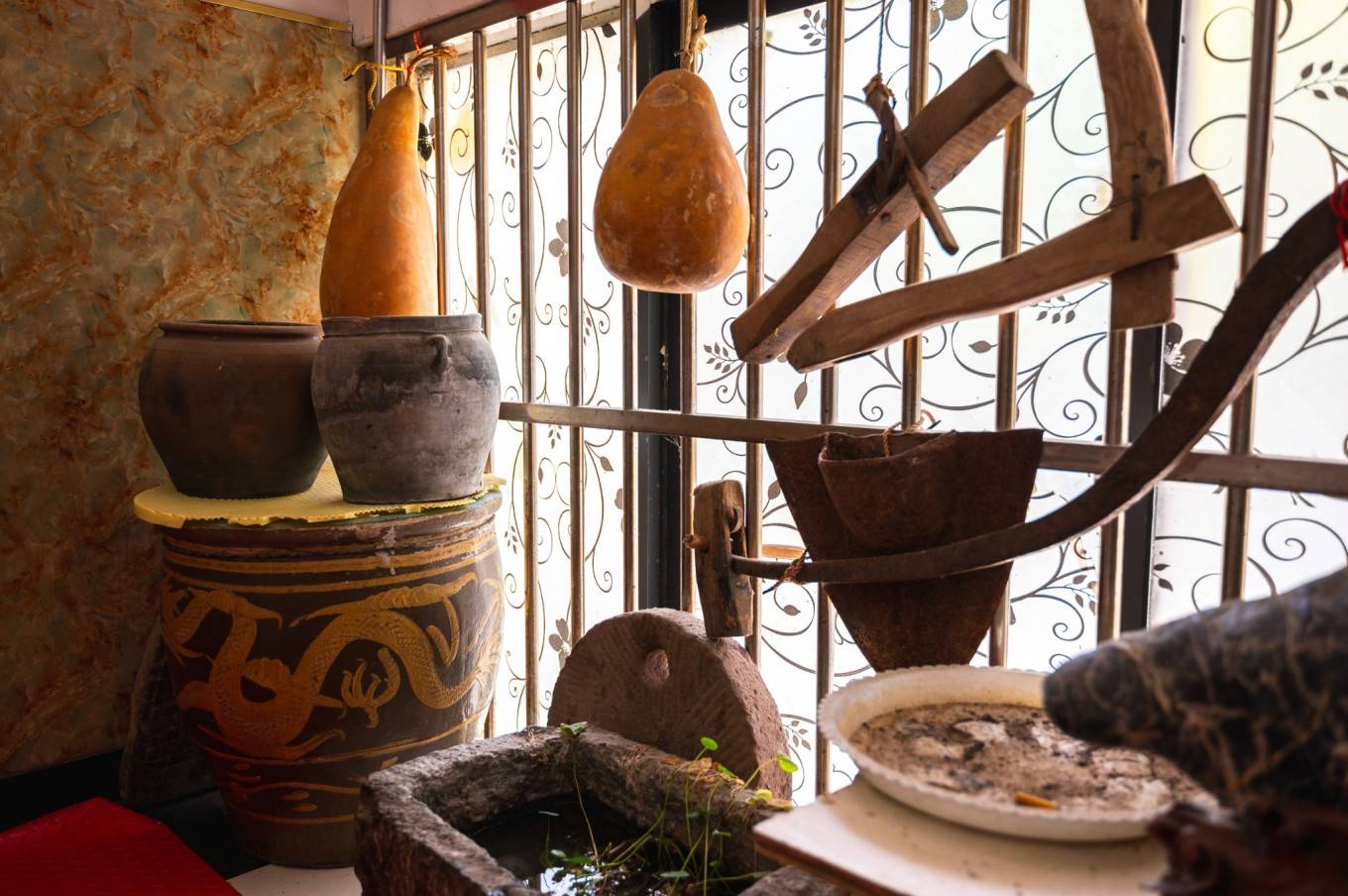 这家店装饰还蛮有意思的,一些农村的老物件及灵璧观赏石,给饭店环境增了不少分。