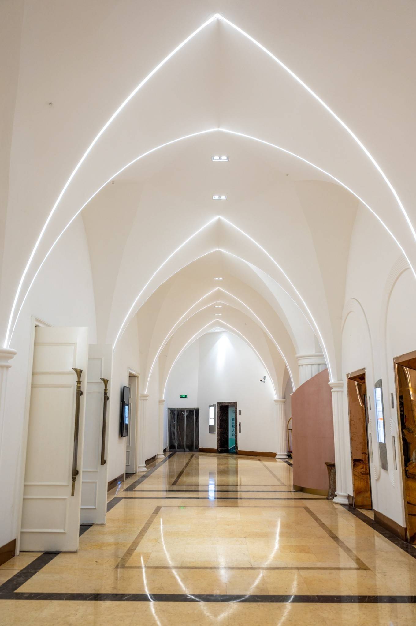 既然是经常举办婚礼的酒店,装修自然一点也不含糊,置身其中,浪漫气息萦绕在身体四周,可以说是当地婚宴的天花板了。