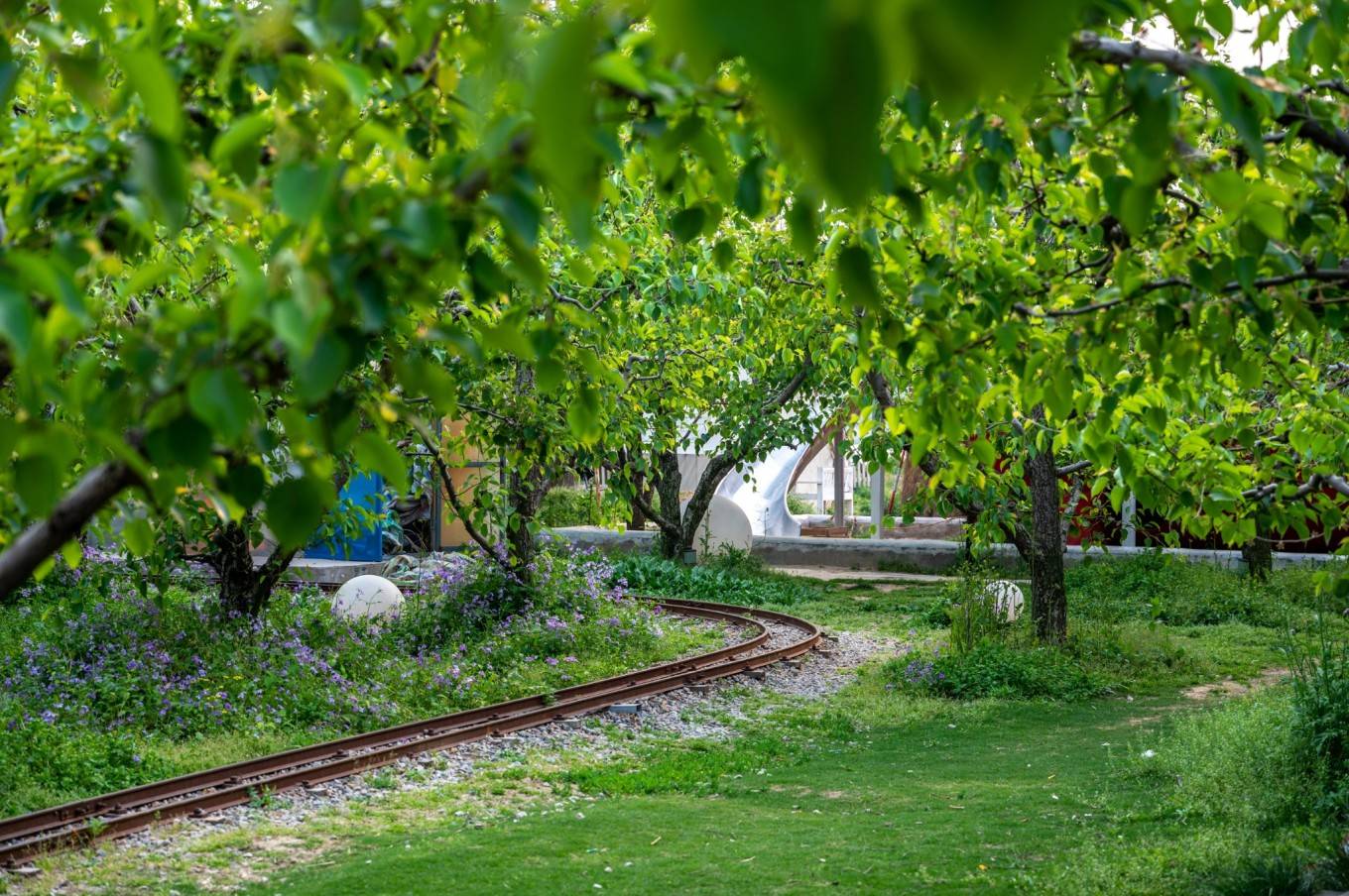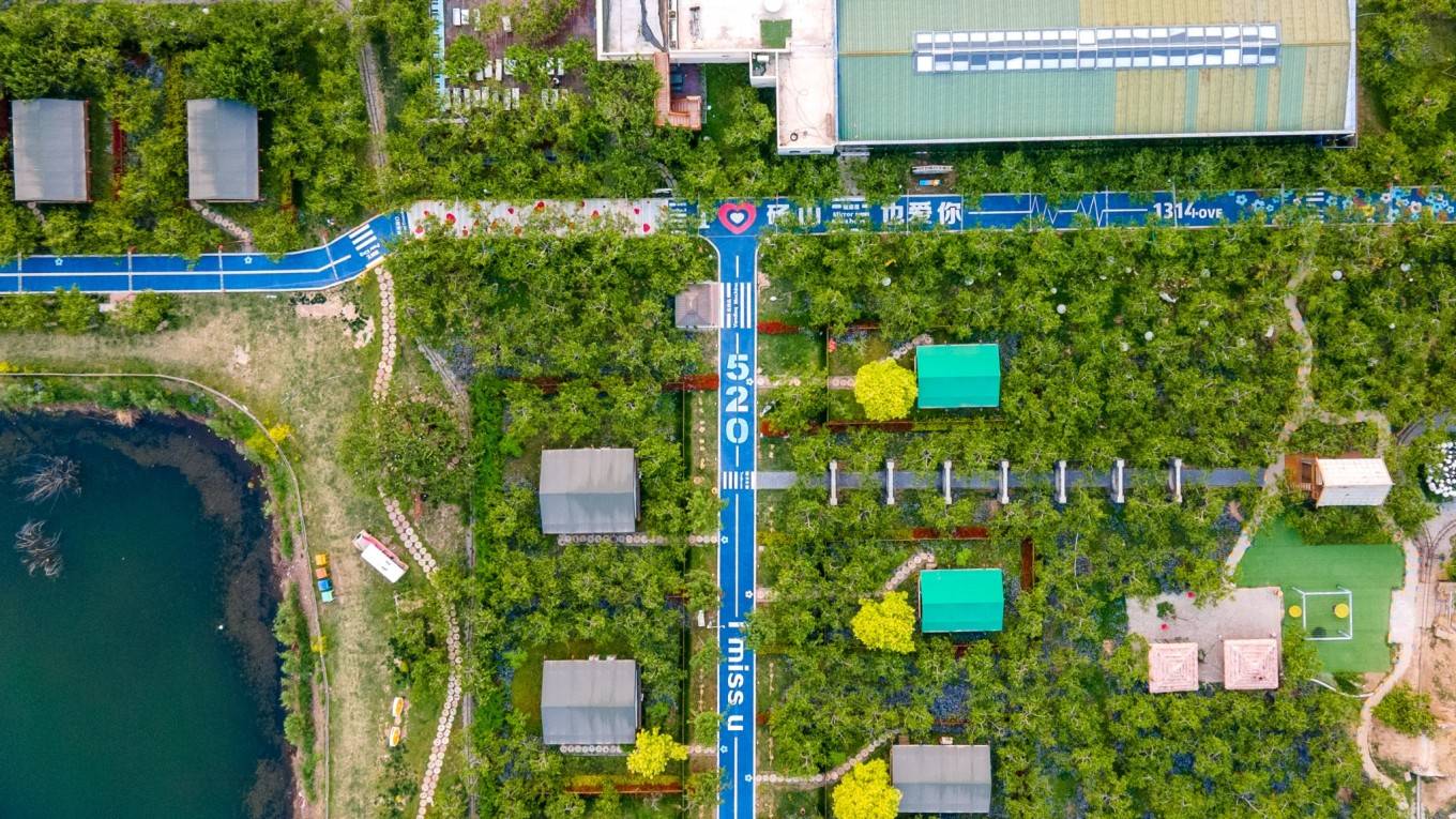 这个季节虽然没有梨花盛开的景色,但那郁郁葱葱的梨树也是别有一番风情,乐园内还设置了许多网红拍照打卡点,随手一拍,就是一张自带ins风的唯美大片,由此还吸引了不少情侣来这里打卡。