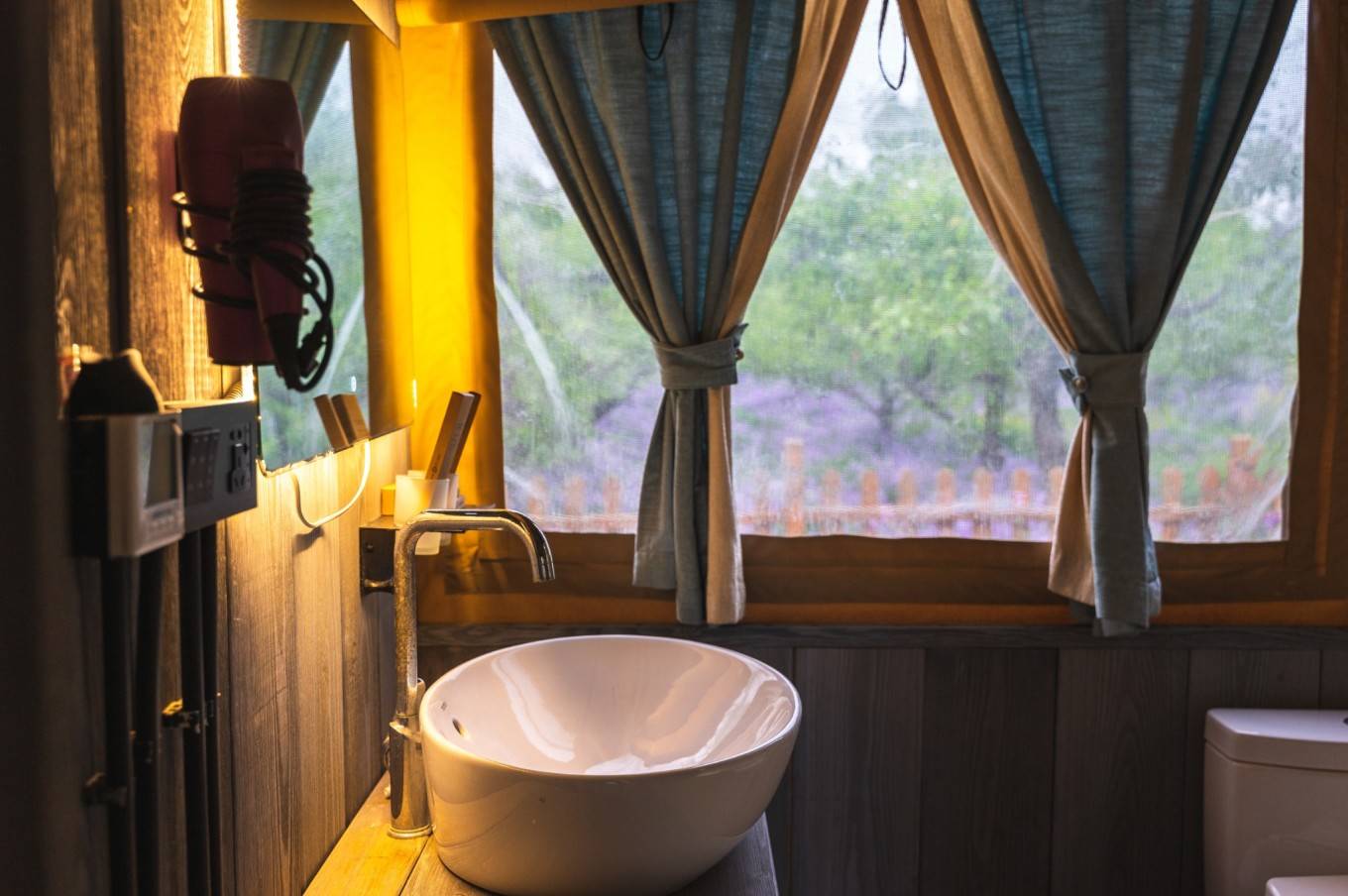 处于梨园中的梨墅帐篷酒店,真的是别有一番情调,我还真是第一次住在果园里,白天逛逛乐园,夜色时果园及帐篷彩色的灯亮起,听着四周的虫鸣声,与大自然亲密接触,那感觉真的非常梦幻。