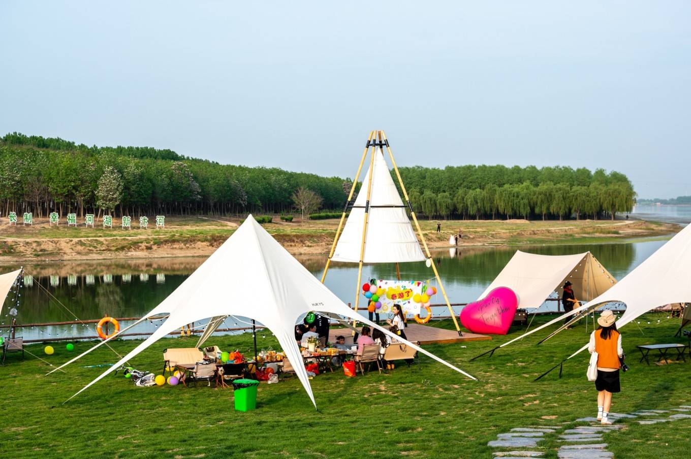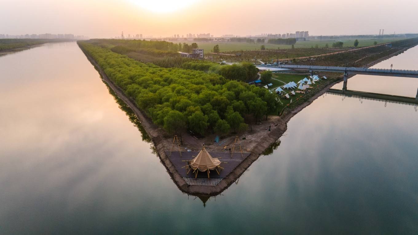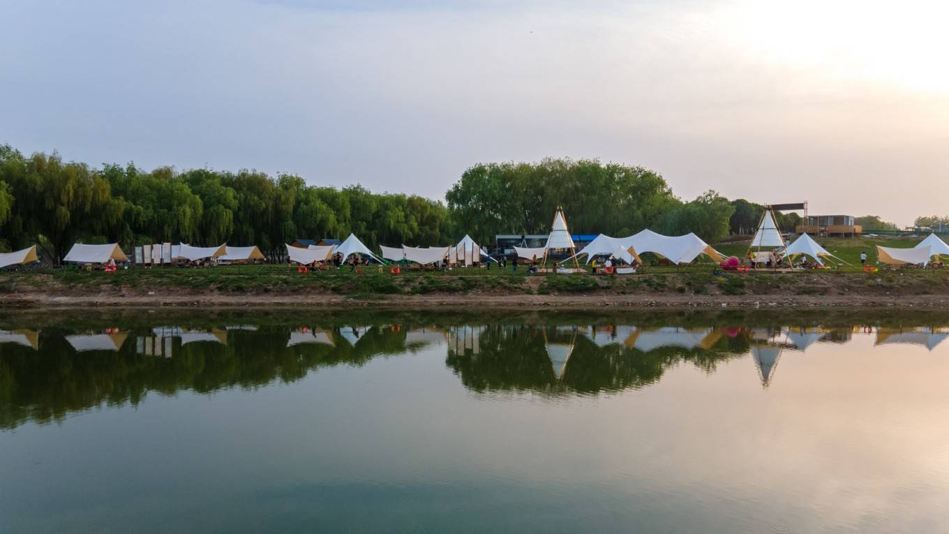 新汴河紫薇园入山海帐篷营地”,营地坐落在新汴河与引河交汇处的河畔,毗邻中华珍奇紫薇文化园,距离宿州城区约20分钟车程。