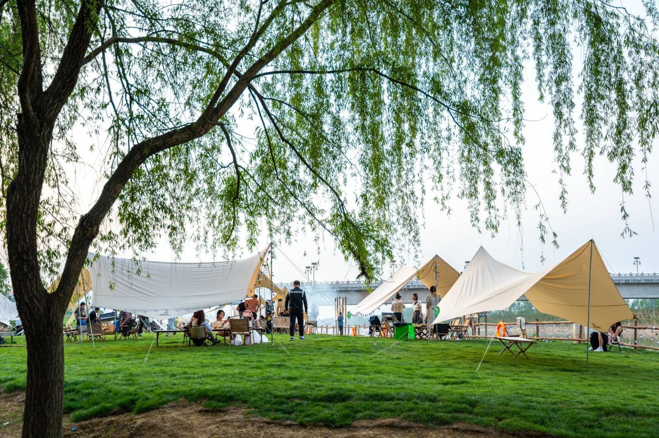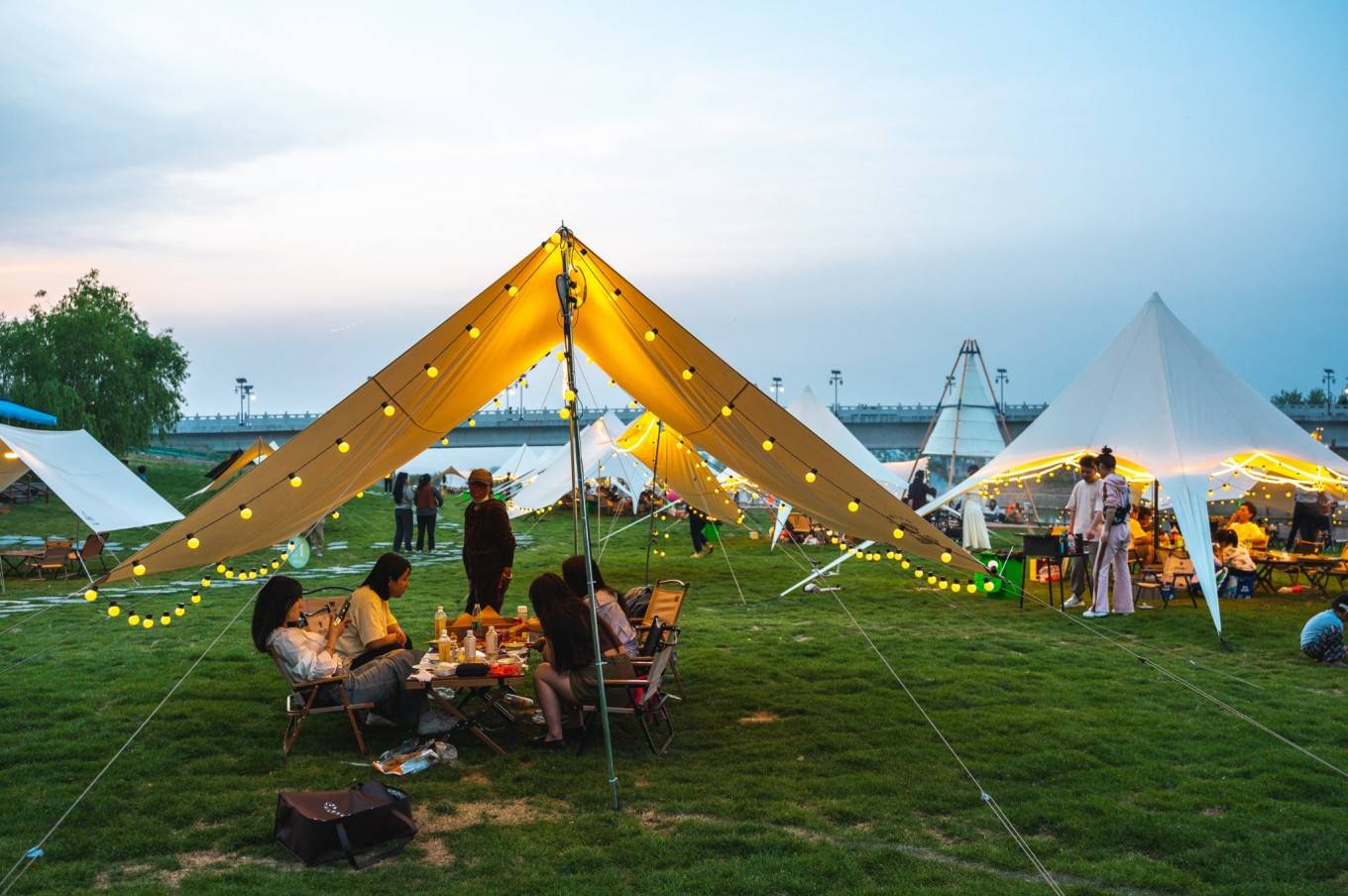 或坐在帐篷下聊天喝酒品尝美食,或坐在河畔静静地望着河水发呆……生活需要仪式感,即便没有时间远行,来一场短暂的户外露营之旅也是一次自我的放空心灵。