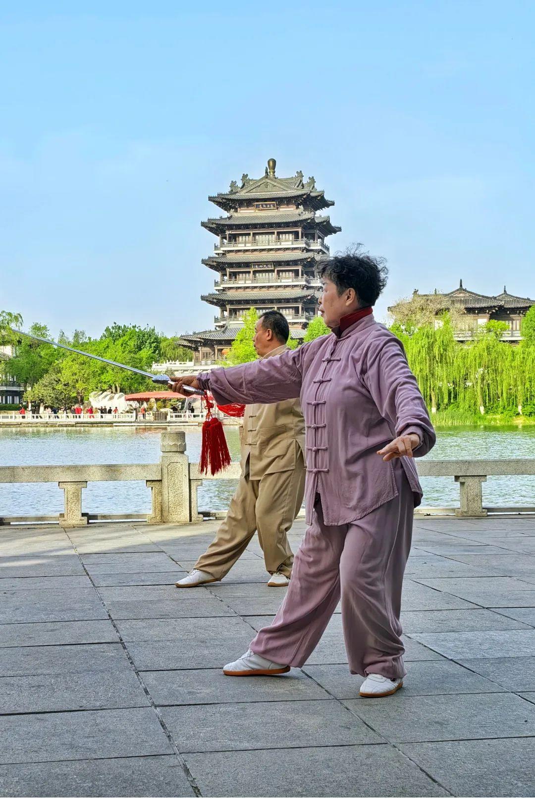 清晨,阳光大方自东而来,超然楼迎来了晨跑和锻炼的人群,太极拳优美的节奏和韵脚融化在超然楼前的晨曦中。