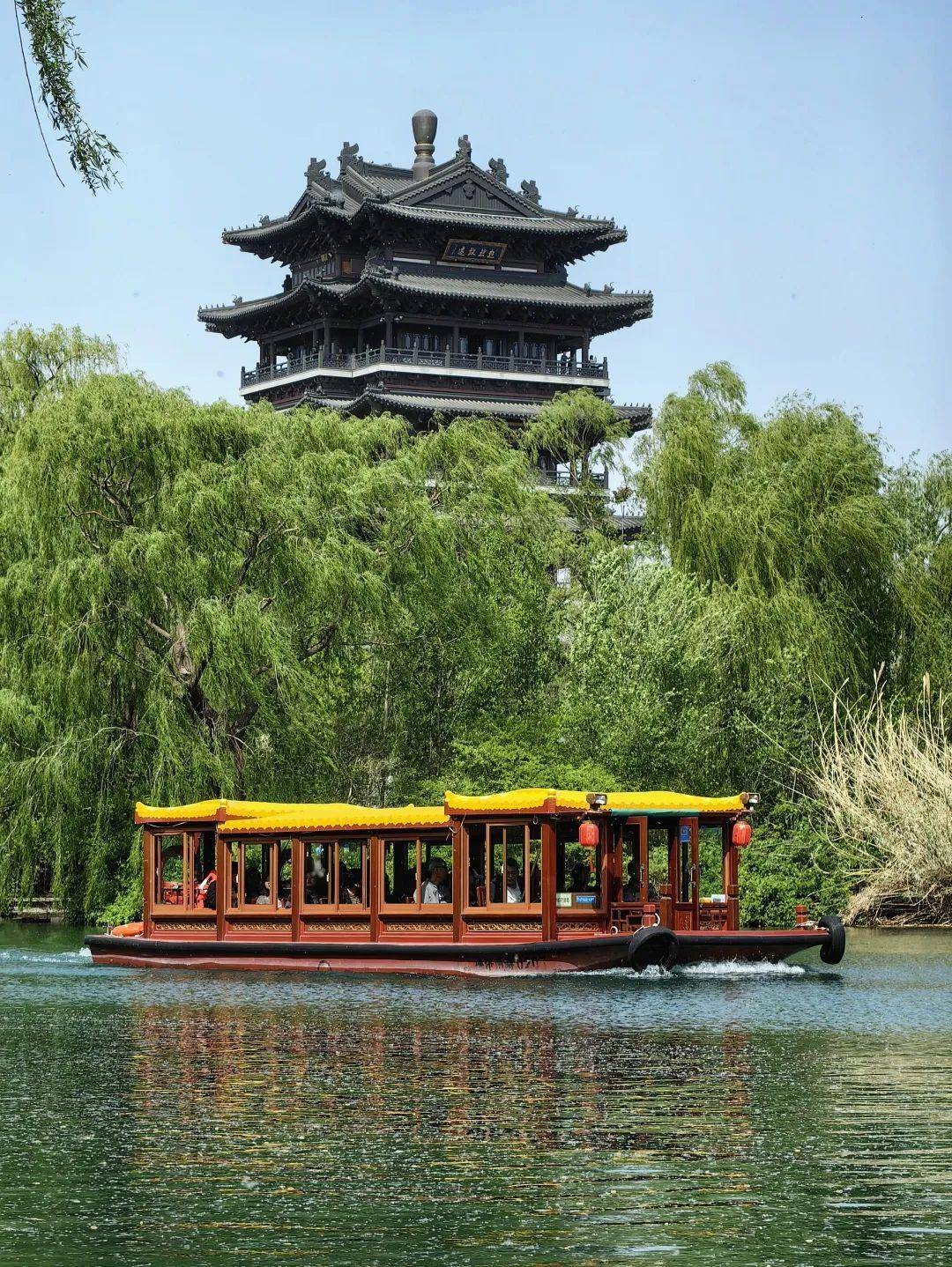 超然致远,日升沧浪,济南正午时分的春天,是垂柳与水的依恋,是画舫雕染里的明天。