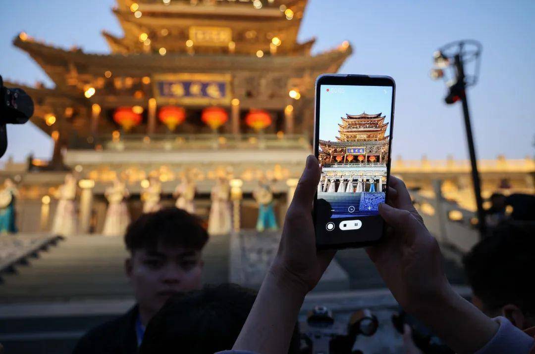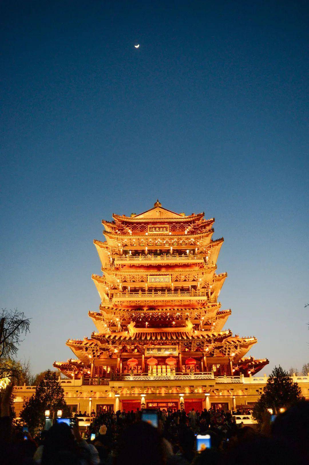 酉时日落,这是白天走入傍晚的标记,超然楼前的广场上,游人开始聚集,人头攒动,摩肩接踵。万千手机与目光集聚,静候超然楼出彩的高光瞬间。
