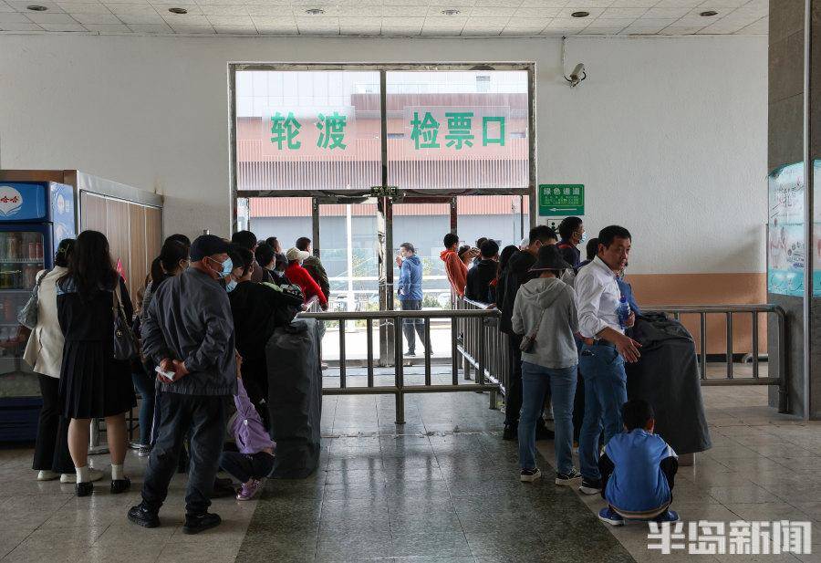 上午11点,青岛发往黄岛的轮渡停止卖票,不少乘客在门口等待