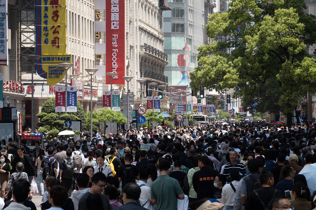 2023年4月30日,上海南京路步行街上游人如织。视觉中国 图
