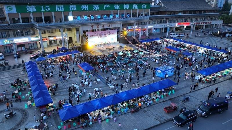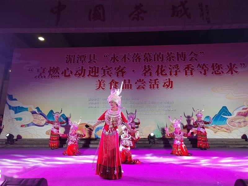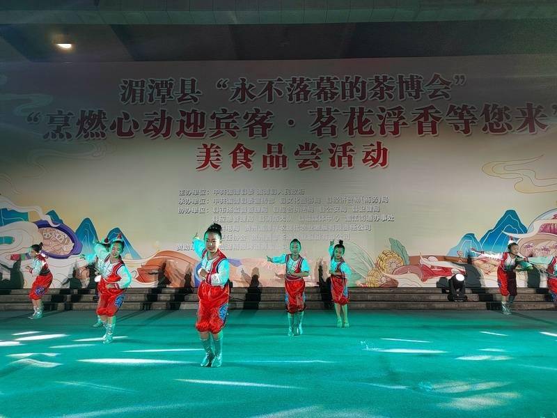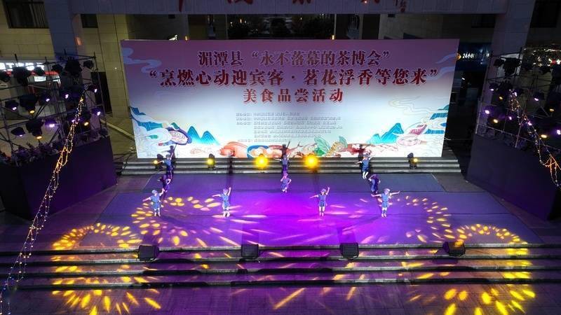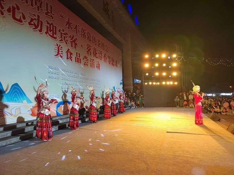 4月29日,贵州省湄潭县举行“永不落幕的茶博会”“烹燃心动迎宾客·茗花浮香等您来”美食品尝活动文艺晚会,一场视觉、听觉、味觉交融的视听盛宴,在中国茶城广场激情上演,吸引了广大市民驻足观看。