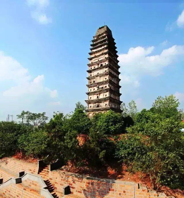 三江白塔位于井研县三江镇。该塔为密檐式名塔,砖木结构,塔身为须弥座四方形,通高28米,共13层。塔内梯道盘旋,可以至第10层。