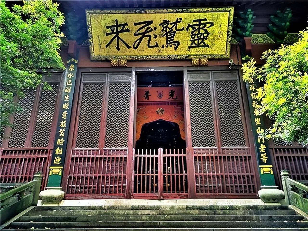 而上面这副对联,既运用了飞来峰与冷泉亭这段公案,也集合了灵隐寺的环境,用于殿上楹柱,相当妥帖。
