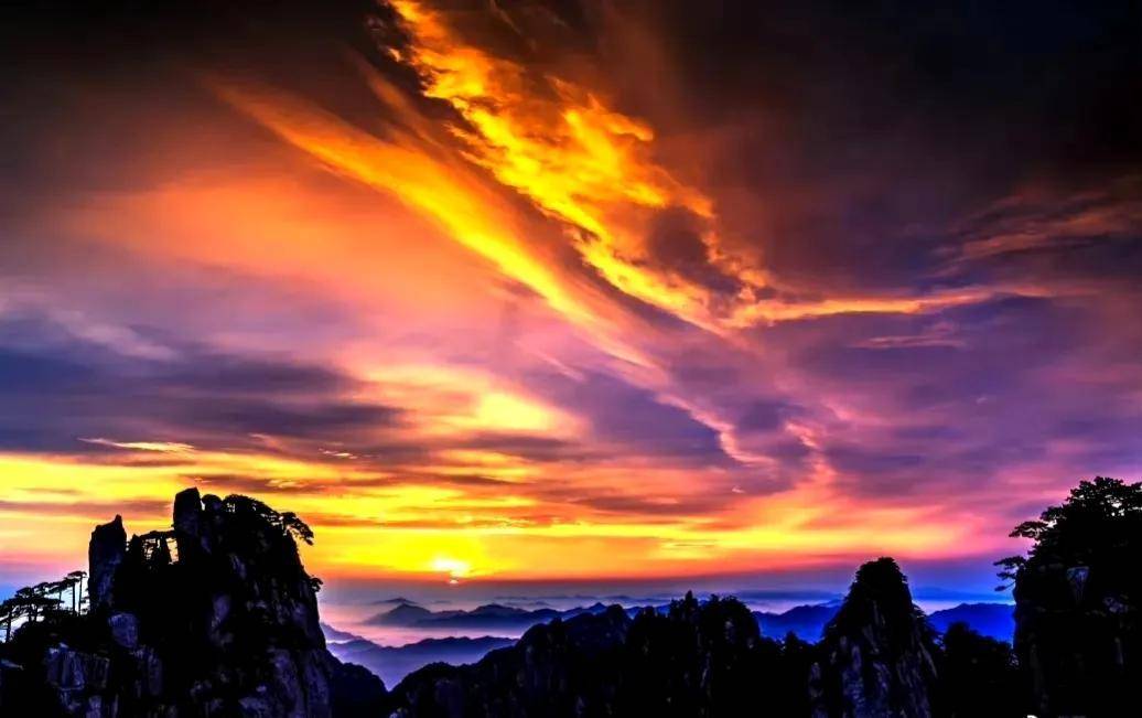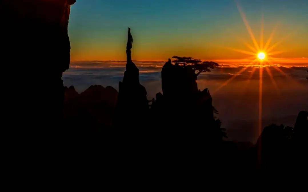 “旭日东升,霞光万丈”,初升的太阳从东方缓缓升起,金色的晨光璀璨夺目,滚滚云海,磅礴壮阔。