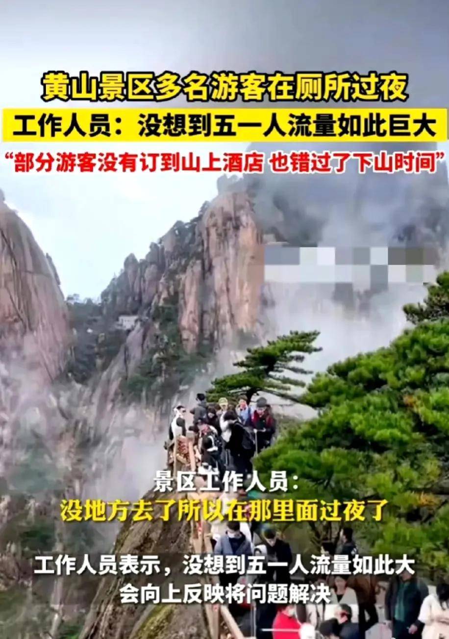 黄山景区的工作人员表示:“我们这边的大巴车晚上就到6点多,很多游客没有订到山上的酒店,又错过了下山的时间,没有地方去,只能在厕所过夜。”