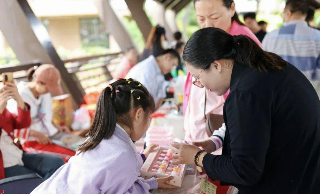 现场还设置有扎染、糖画等非遗手工体验区,熟练掌握广西民族传统手工刺绣与扎染蜡染技艺的陈红英从小看外婆织壮锦,耳濡目染,深深迷恋着传统民族工艺。陈红英在现场为游客们展示扎染的技术,“日常生活中看到的布艺品,例如围巾、包包、窗帘、布偶等,都可能含有扎染的技艺。”
