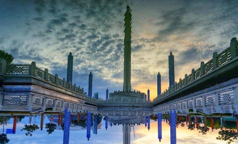 中阿轴心景观大道是为纪念中阿经贸论坛永久落户银川而修建的。在这里可以欣赏到美丽的阿拉伯建筑和中国建筑。