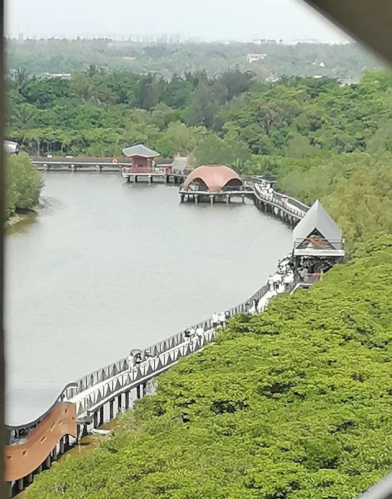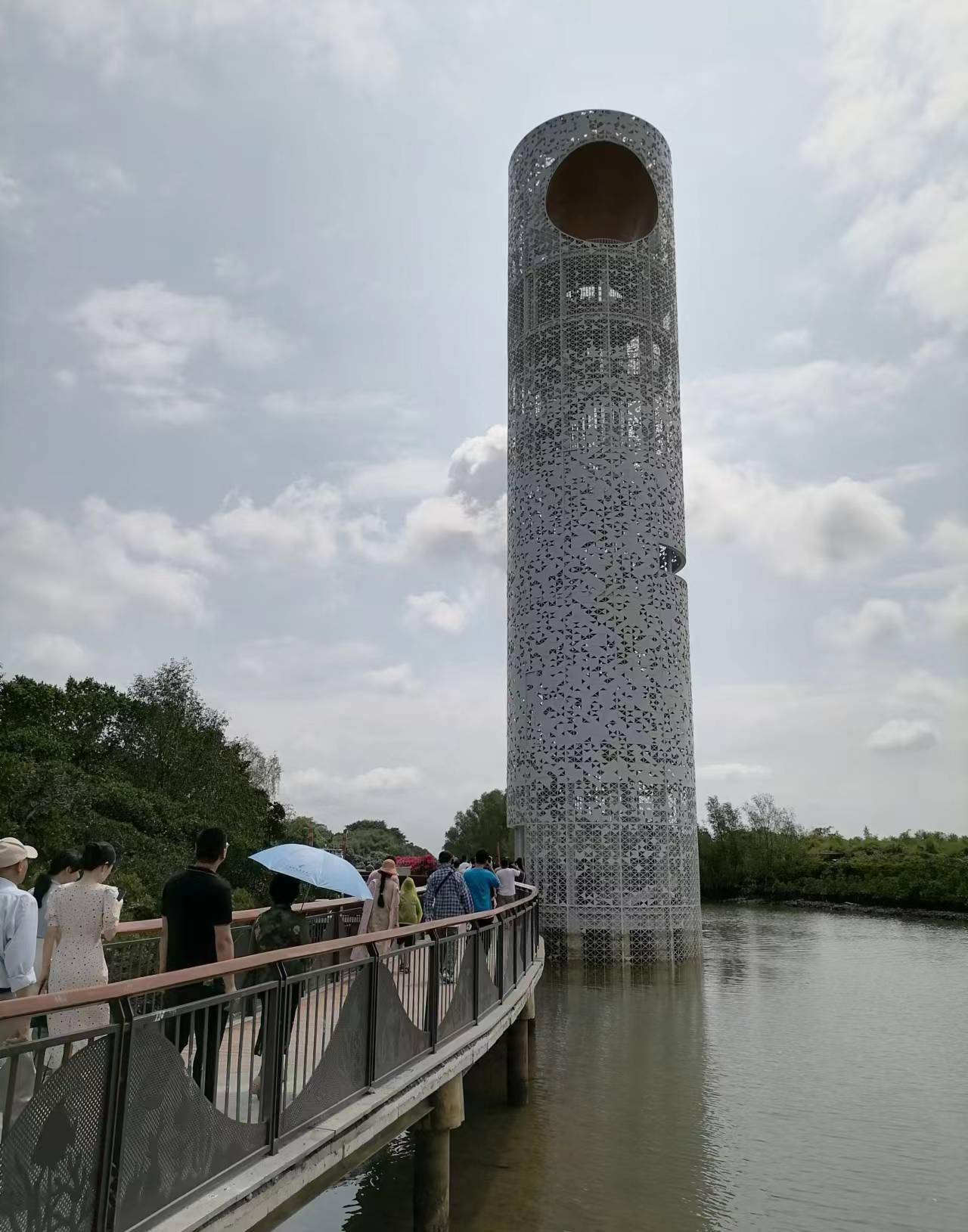 4月29日,位于海口市美兰区演丰镇的红树林科普栈道试开园,红树林科普栈道、海镜·月之塔正式开放,吸引众多市民游客前来游玩打卡。