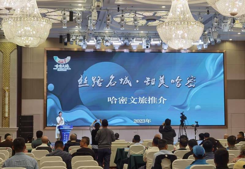 “丝路名城 甜美哈密”文旅资源推介会现场。石榴云/新疆日报记者 刘萌萌摄
