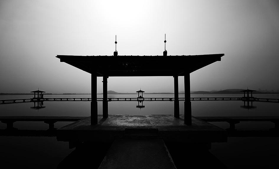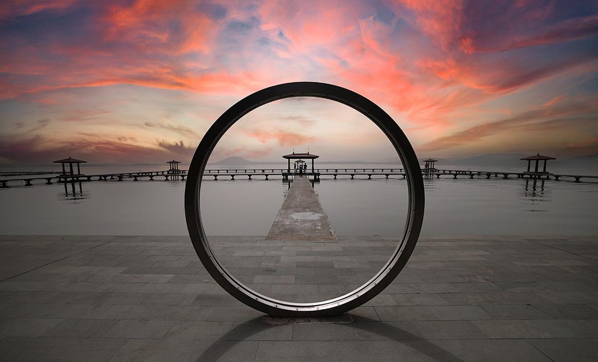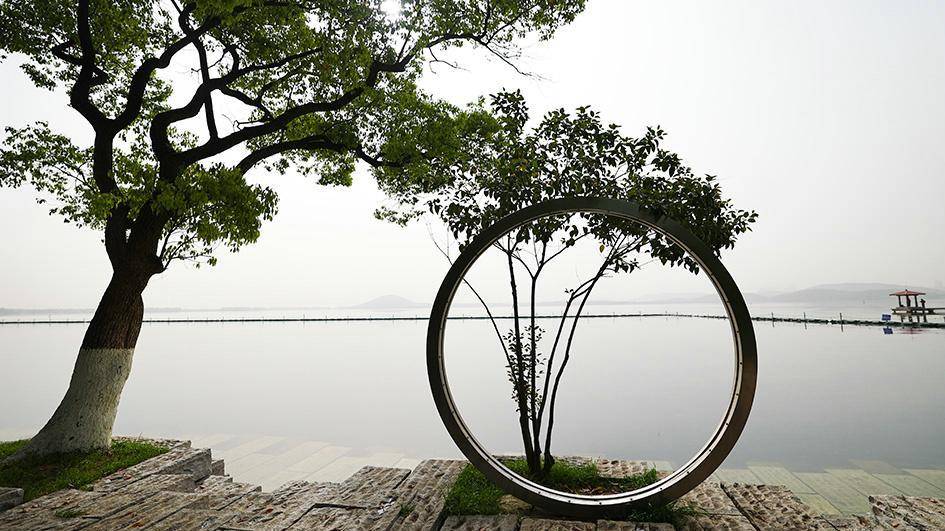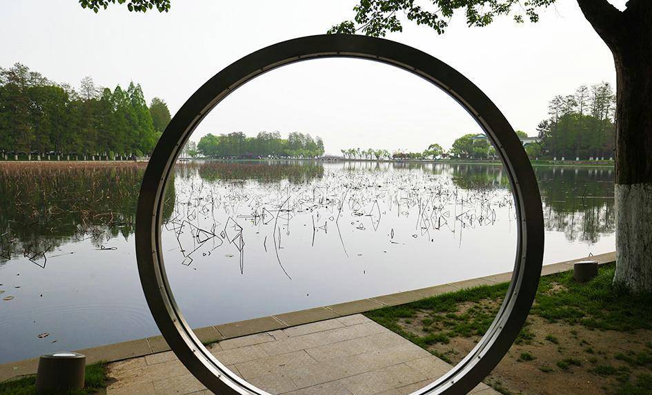 图二,走进听涛景区,沿着水边走,可以看到第一个圆形的取景框。