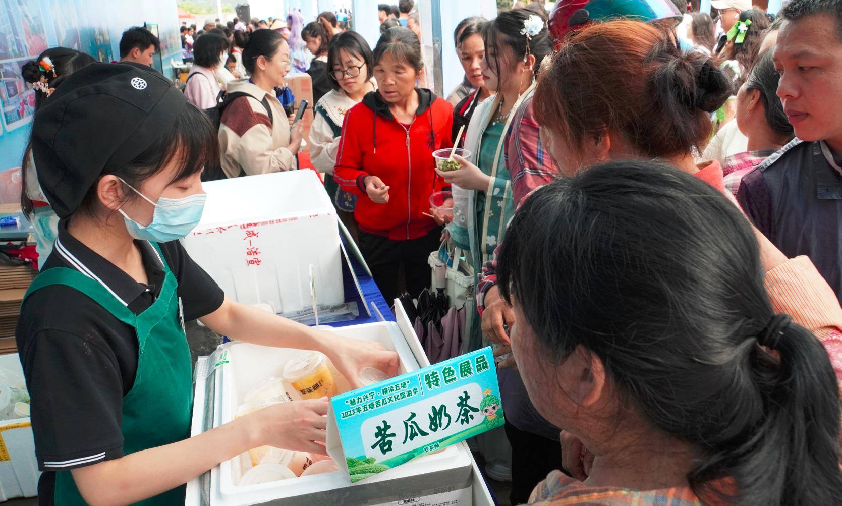 五塘苦瓜美食体验区中,苦瓜饮品受到市民青睐。记者 黎南茜 摄