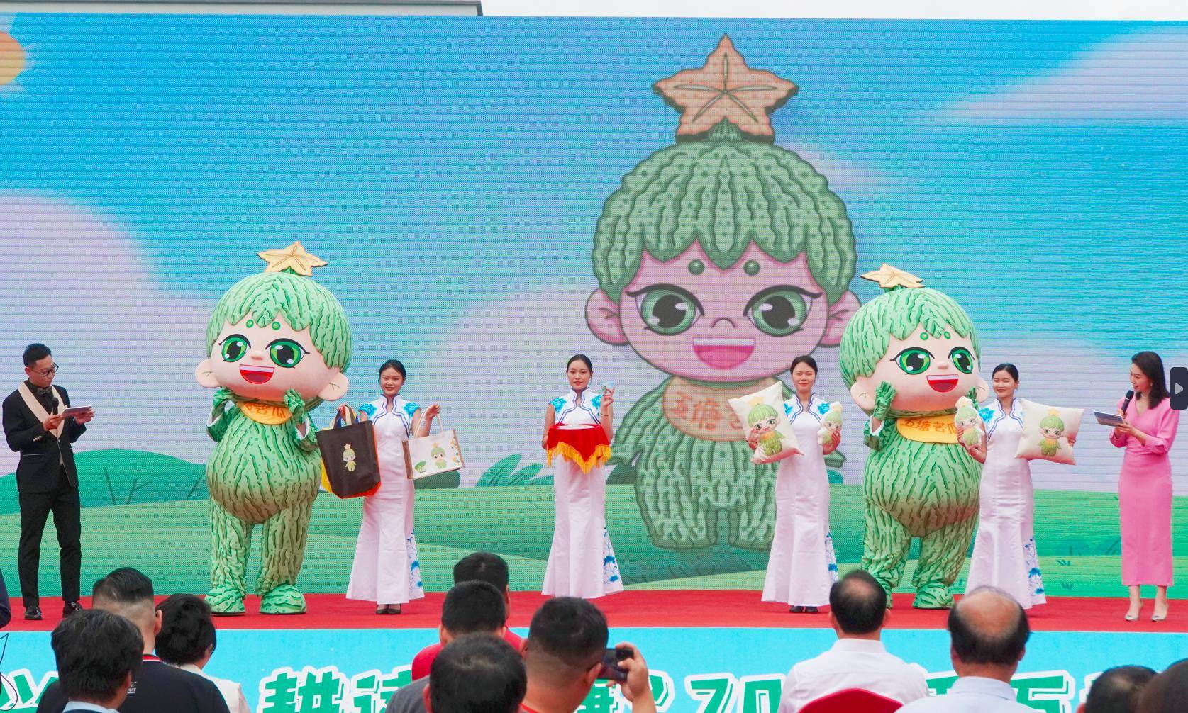 “苦瓜仔”形象、苦瓜钥匙扣、苦瓜布袋苦瓜娃娃等五塘苦瓜仔系列文创产品在开幕式上发布。记者 黎南茜 摄
