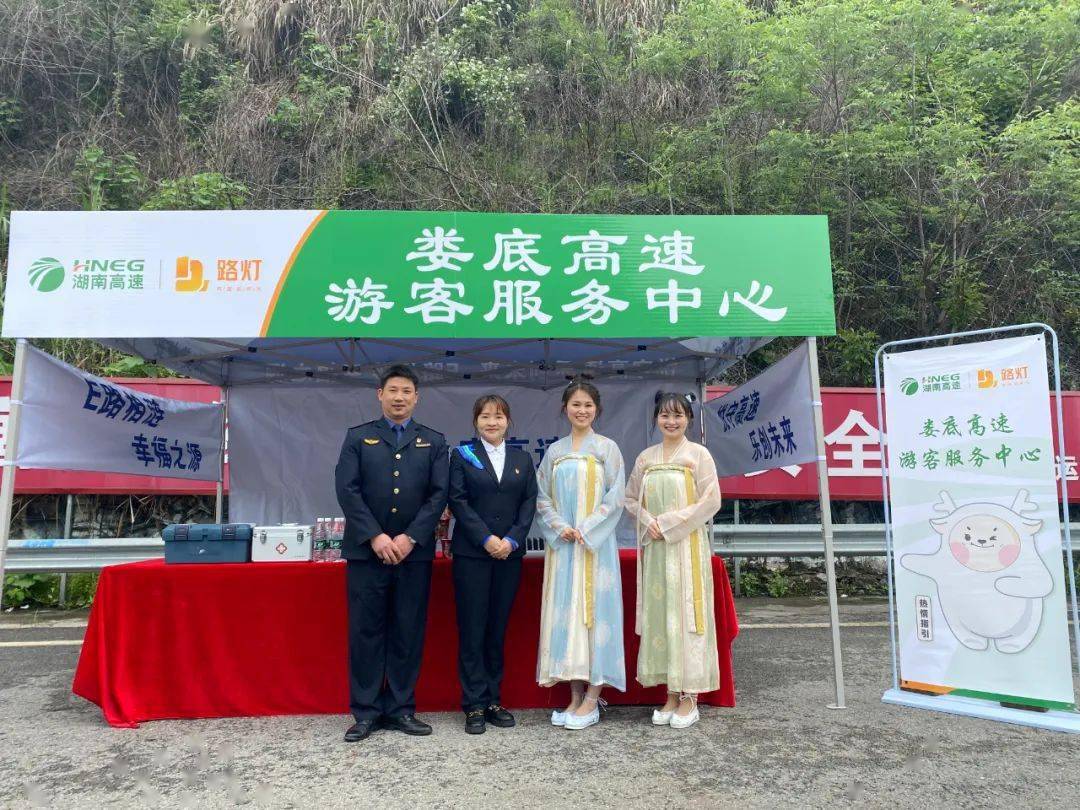 湖南高速集团“双品牌一体化”建设试点站点娄底分公司涟源中心站,在收费站广场设置“娄底高速游客服务中心”,高速小姐姐着汉服向司乘推介家乡景点,同时免费提供辖区景点路线导览手册、应急医药箱、修车工具、泡面、ETC办理等服务。
