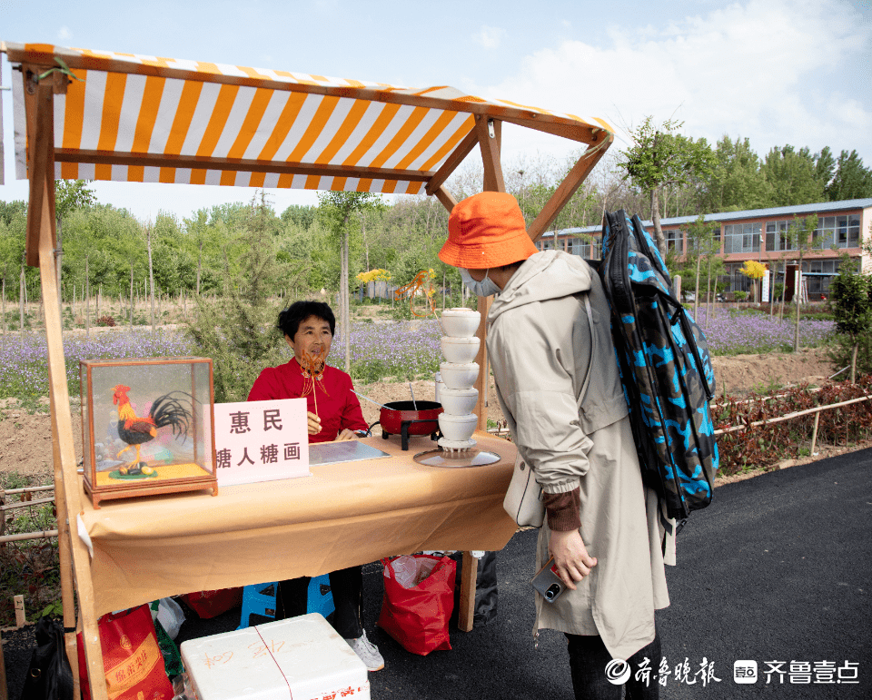 在大集一侧,葫芦烙画、槐花蜂蜜、小芳菇水饺、毛绒玩具、马铁头粮食酒、黄家烧鸡、魏集驴肉、精酿啤酒等琳琅满目的商品及手造产品也吸引“赶集人”的目光。