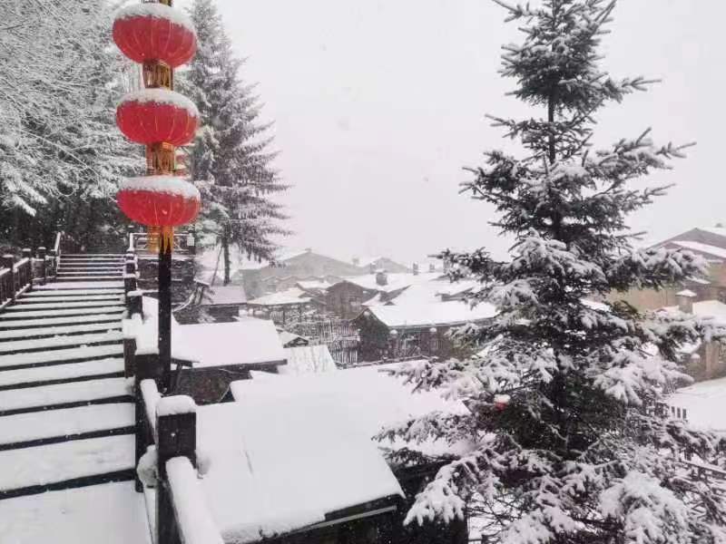 据了解,此次降雪从凌晨5点开始,目前,景区内积雪厚度已达5厘米左右,亚雪公路已达10厘米左右。降雪仍在持续中。