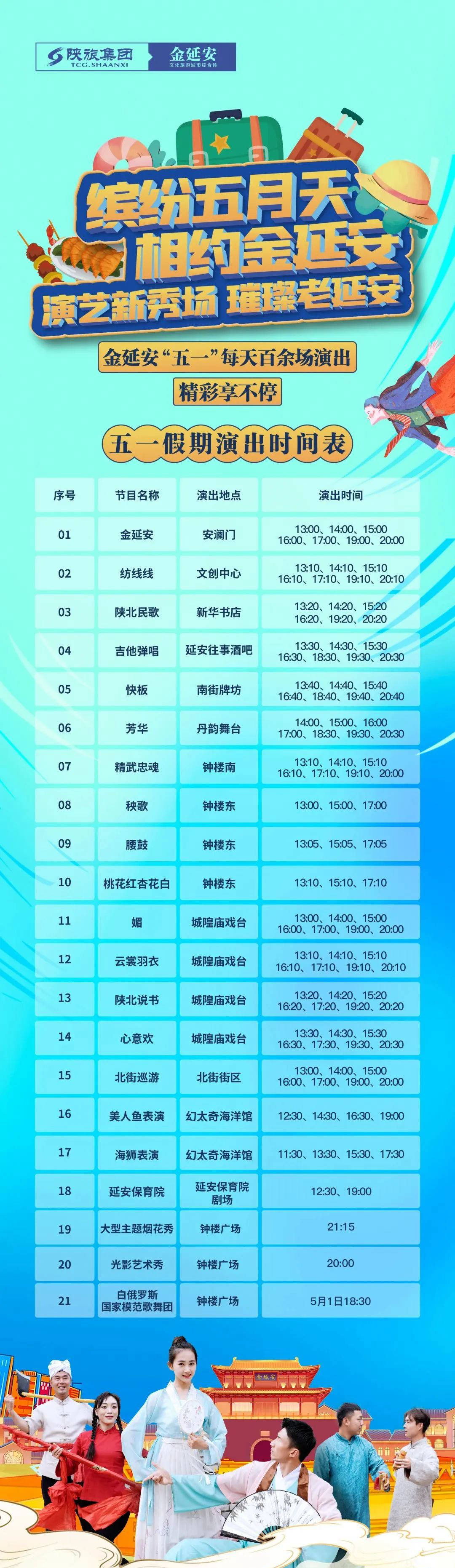 4月29日,“缤纷五月天·相约金延安”暨圣地河谷首届非遗国潮文化旅游节,在延安盛大启幕!与此同时,印迹乡村金延安音乐节、白俄罗斯国家模范歌舞团2023年来华首场演出、第九届陕西音乐奖声乐比赛暨第十四届中国音乐金钟奖延安赛区“金延安杯”歌手大赛颁奖典礼、延安市旅游活动周等多场精彩活动也将如期举行!