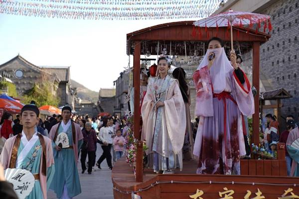 换装体验馆里,游客纷纷换上民国学生装和古风装,在复古建筑各种姿势拍照,留下五假期的美好记忆。“大宋传奇号”古风花船在复刻北宋延州府的历史街区里巡游,古香古色的古风装展演完美演绎中华服饰之美,感觉一秒穿越回大宋边城延州府,引得游客一路拿出手机拍照,走在充满“烟火气”的金延安街区里,街巷两旁的各色美食、地道的陕北小吃以及来自全国各地的特色美食,让游客一边在欣赏美景的同时,体验舌尖上的陕北味道。