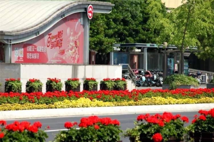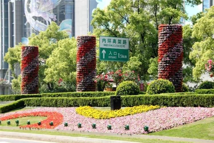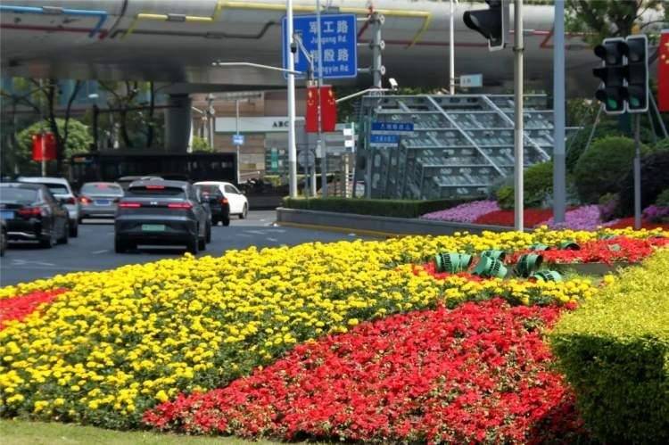 杨浦区绿化部门装扮花卉节日景观