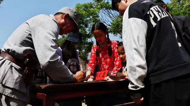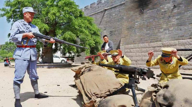 他们以艺术团演员为《跟着团长打县城》演员班底,并从前来景区游玩的游客中招募了部分演员,组成了全部表演阵容。参与演出的游客圆了演员梦,过足了表演瘾,“参与这个体验活动很有意思,我以前从来没有演戏的经历,今天算是过了一把表演瘾,挺好玩的,我非常开心。我的孩子也参与了演出,通过演出,也接受了教育。”游客于升锋在戏中扮演了一名攻城的八路军战士后开心地说。(郑树平)