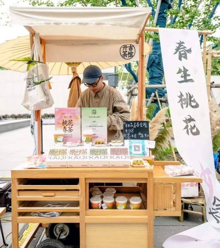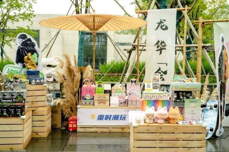 紧挨着寺院墙根,短短几十米的“小巷”被安排得满满当当:有青年茶饮品牌开吉茶馆专门为2023上海龙华庙会推出联名款限定茶饮套餐,其中,桃花春茶由经冷萃浸泡后的新鲜桃花与乌龙茶、锡兰红茶等不同茶叶融合打造而成,搭配桃花酥和白桃乌龙茶冻,于龙华庙会的烟火气与暖暖春风中,食出桃香,喝出惬意;有国潮品牌龙心带来寓意吉祥文化的潮流IP——BUFF兔(八福兔)手作体验,以活力缤纷又极具未来感的场景吸引市民游客纷纷前来打卡,现场陈列的NFT数字藏品及IP实体周边等,更带来从亘古到未来的中式潮流文化魅力;还有老字号品牌跨界创新的代表茅台冰淇淋携春夏新品入市,全球潮玩集合店楽时潮玩带来全国限量的桃花主题盲盒……现场,国风舞蹈、民俗糖画、非遗草编、汉服游戏Cosplay、民谣LIVE接续登台,上海龙华会借“妙会龙华”以商业之力传承地方文化根基,共同妙想徐汇龙华未来的文化与商业活力。