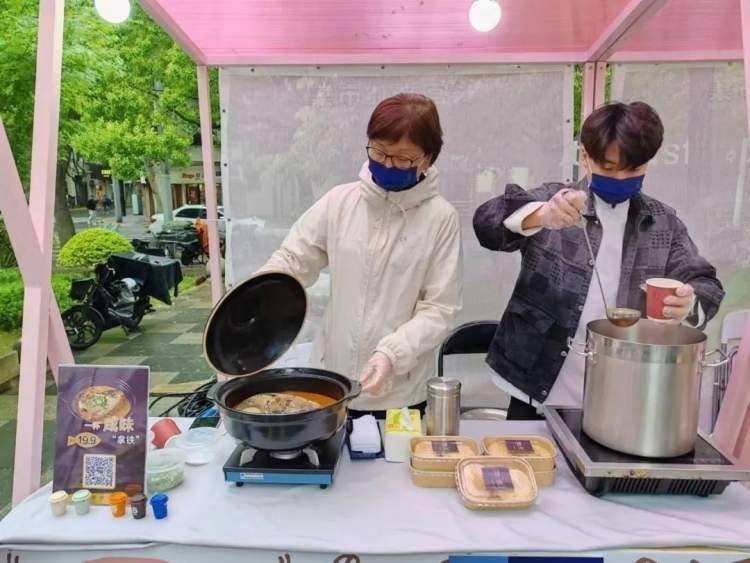 在最受吃货们欢迎的美食区,一家专做本帮非遗菜品的摊位吸引了不少市民驻足。据摊主秦女士介绍,她自己是上海非物质文化遗产本帮技艺第三代传承人,此次参加市集带来了一款被评为上海市非遗项目的招牌菜——“非遗拿铁鱼头汤”。“这款鱼头汤源自传统的砂锅鱼头汤,因为鱼头汤所呈现的颜色和拿铁咖啡的颜色是一样的,而将拿铁咖啡融入鱼汤内可以去除部分鱼腥味,两者结合在一起可以带来独特的口感。”秦女士说道。