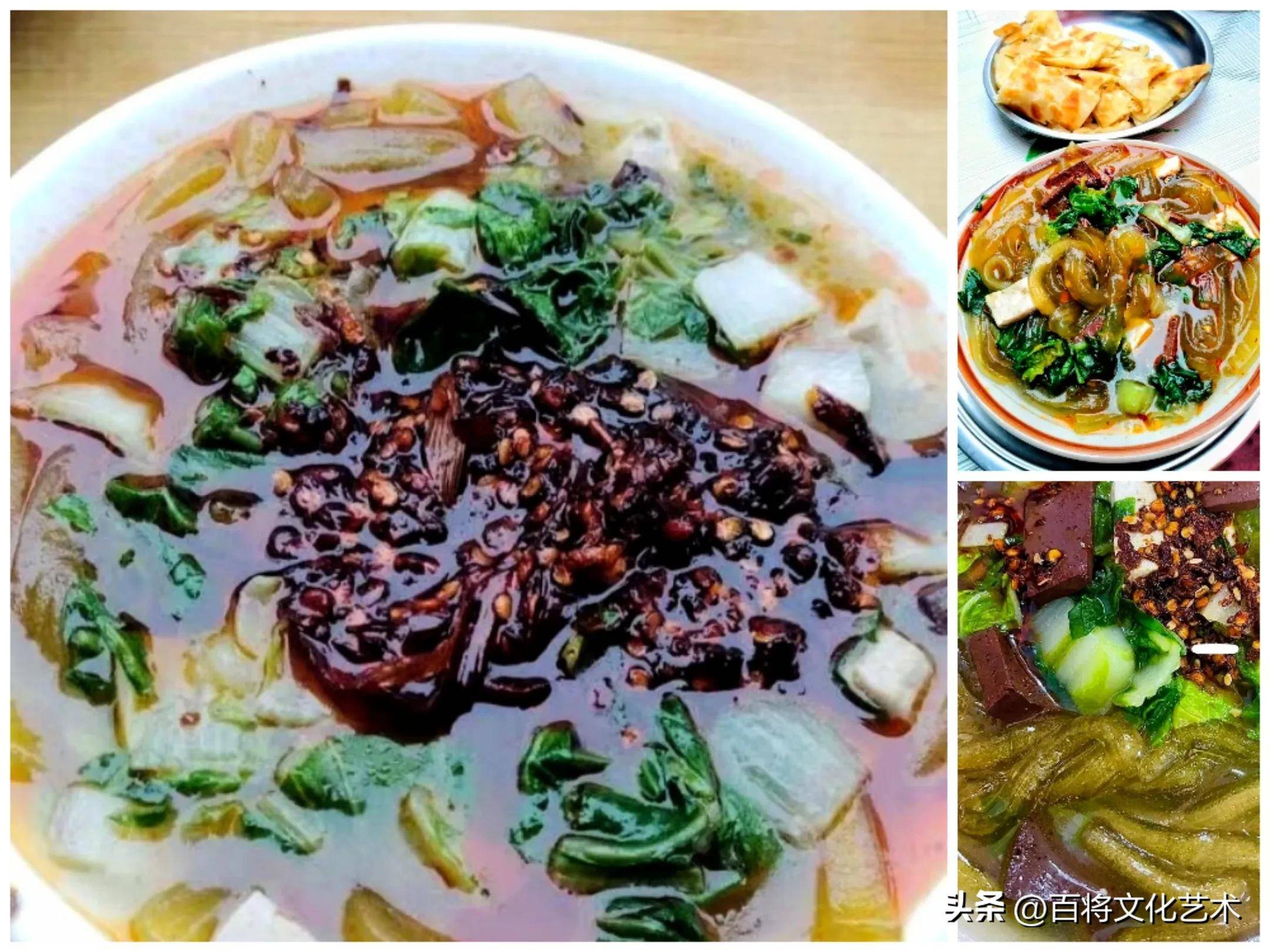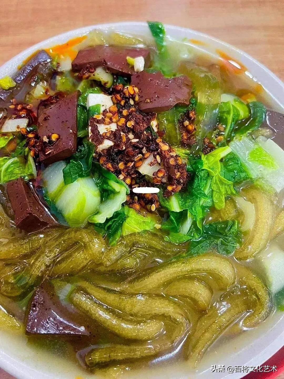 我也爱吃扁粉菜,因爱人家是安阳市的,每次从部队回到安阳探亲,经常到早餐摊前吃上一碗扁粉菜。吃完后浑身冒汗,感觉特别舒服,环顾四周,都是吃扁粉菜的父老乡亲,个个吃得有滋有味,有时与他们聊上几句,说说笑笑,真是惬意。有一次,我在安阳休探亲假,一天中午特别想吃扁粉菜,一个有名的摊点距家有七八里路,我骑上自行车,顶着烈日就去了。到摊点后,摊主说扁粉菜刚卖完,下一锅还需等1个小时,我毫不犹豫地说:“没关系,我可以等。”可见,扁粉菜的诱惑力有多强,想吃的瘾有多大,劲头有多么足。1个小时后,满心期待的扁粉菜终于端到了我的眼前,吃上一口,辣椒的给力,豆腐的清香,猪血的鲜嫩,青菜的爽口,各种味道都汇聚在那一小根粉条上,鲜滑爽嫩的感觉怦然心动,汤汁满溢于口中,香而不腻。两碗扁粉菜吃完,齿颊留香,菜香和汁香在口中久久不散,心中无比满足。