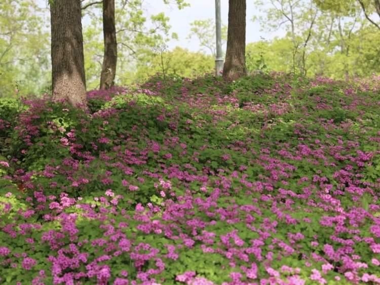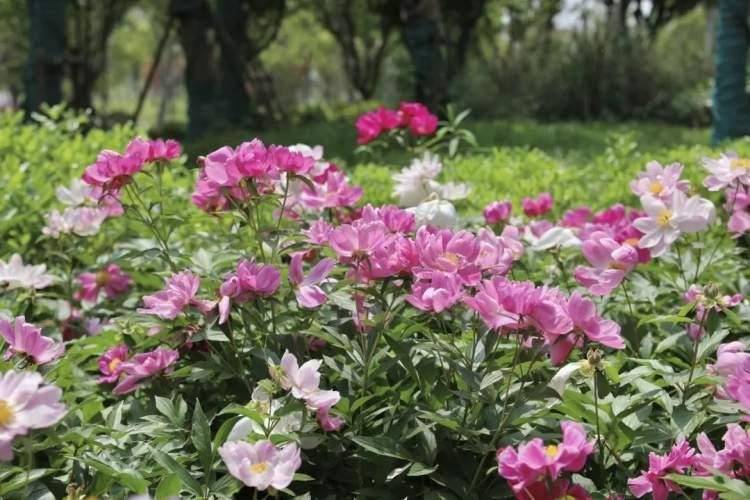 芍药作为草花之首,一直被作为高端鲜切花。通常居民朋友们想要赏芍药花,都要在公园里,可是小编惊喜地发现长华路华济路路口的绿地里种有一片芍药花。绿地不大,却别有洞天,远远望去,芍药花随风飘香、美如云霞。