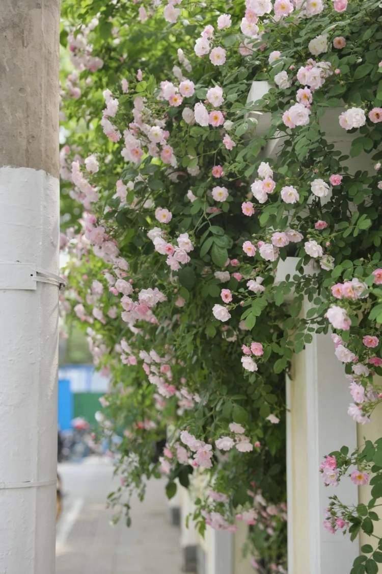 据李时珍说,因蔷薇“草蔓柔靡”,依墙攀援而生,故名蔷薇。蔷薇花因为有较强的爬藤能力,非常适合做花墙,由于它花量大、香气浓,成为了春天的“当家花旦”。华泾镇比较集中的两处蔷薇花墙均位于华泾路,五一期间正好进入盛花期,正是赏花好时机。