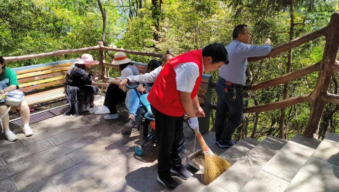 景区保洁人员白天不间断清扫,给游客最干净的游览环境。