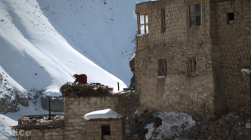 肯拉普向摄影师讲述他近乎神迹的前世记忆,他的前世在一次和同伴外出时掉队,被雪崩掩埋了,而后在斯金村转世,这才有了肯拉普。僧侣们在这里有着自己的一套哲学体系,例如,他们认为世间万物之所以存在,是因为我们看它们,他们还认为柳树也有思想,因为柳树到了晚上就将它们的叶子闭合,而一旦将它们的树皮去掉,它们就会死去。通向寺庙的唯一路径是一条崎岖的小路,25年来,他们每年都会倾巢而出一起修路,大家苦中作乐,欢声笑语中就把小路修好了。小僧侣们还每天都需要出去捡柴火,结冰的河面很滑,一不小心就会摔倒,时不时还需要爬过陡峭的悬崖,捡完柴火,还需要来到悬崖边接水,由于地面太滑,肯拉普差点摔倒,在摄影师的帮助下,方才可以慢慢的往回退,回到寺庙里,还需要自己烧火煮水,包括洗刷餐具等等,这些都是小僧侣成长的一条必经之路。