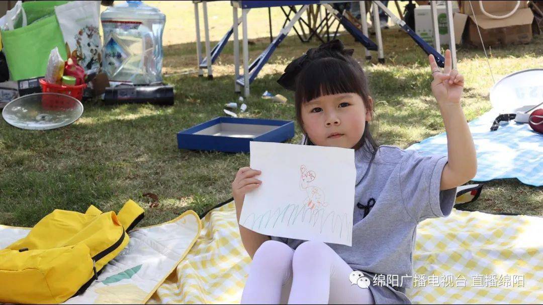 露营天幕下,游客谢渊正和朋友们一边吃东西一边闲聊,不时传来欢声笑语,孩子们则在一旁开心地画着画。