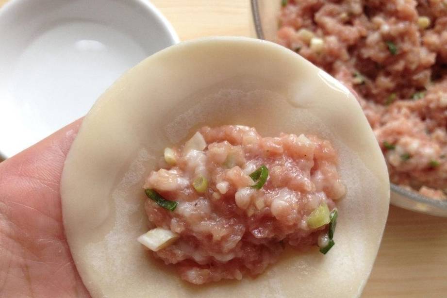 做猪肉馅:准备2斤猪肉,洗干净,放入一点食盐,加一点水浸泡一段时间,接着将肉切开,放入绞肉机中搅拌成肉馅儿,并加入半碗花椒水搅拌成肉泥,再加入胡椒粉、酱油和香油以及食盐等,看见肉馅儿很绵软,就好了。