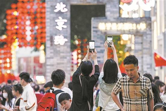 游客在北京路步行街内观光 |