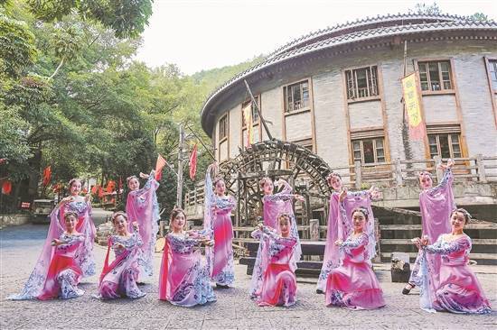 走进梅州客天下景区里的“客家小镇”,只见绿水青山间点缀着一座座独具特色的客家吊脚楼与客家围屋,屋内有客家小吃与客家非遗项目表演,处处展现浓郁的客家风情。“梅州客天下是感受客家文化的好地方,一定不能错过。”来自潮州市饶平县的游客黄先生说。
