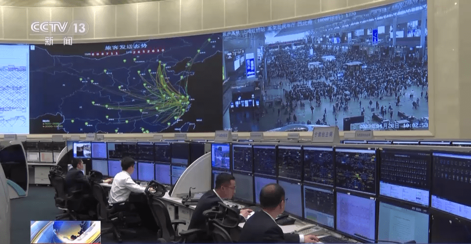 总台央视记者 郑连凯:在调度大厅的屏幕上,我们可以看到包括虹桥站在内,长三角地区740多座车站的客流情况、13000多公里铁路线上列车的运行状态。在一张显示从长三角连通全国各地干线铁路的图上,区分了不同的沿线,其中红色的京沪、沪汉荣、沪昆方向是客流量最大的,而这里的工作人员可以根据客票需求实时调度,增开临客列车。